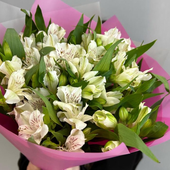 Букет из 11 белых альстромерий в упаковке