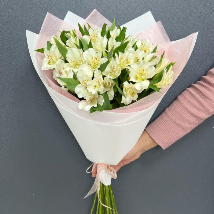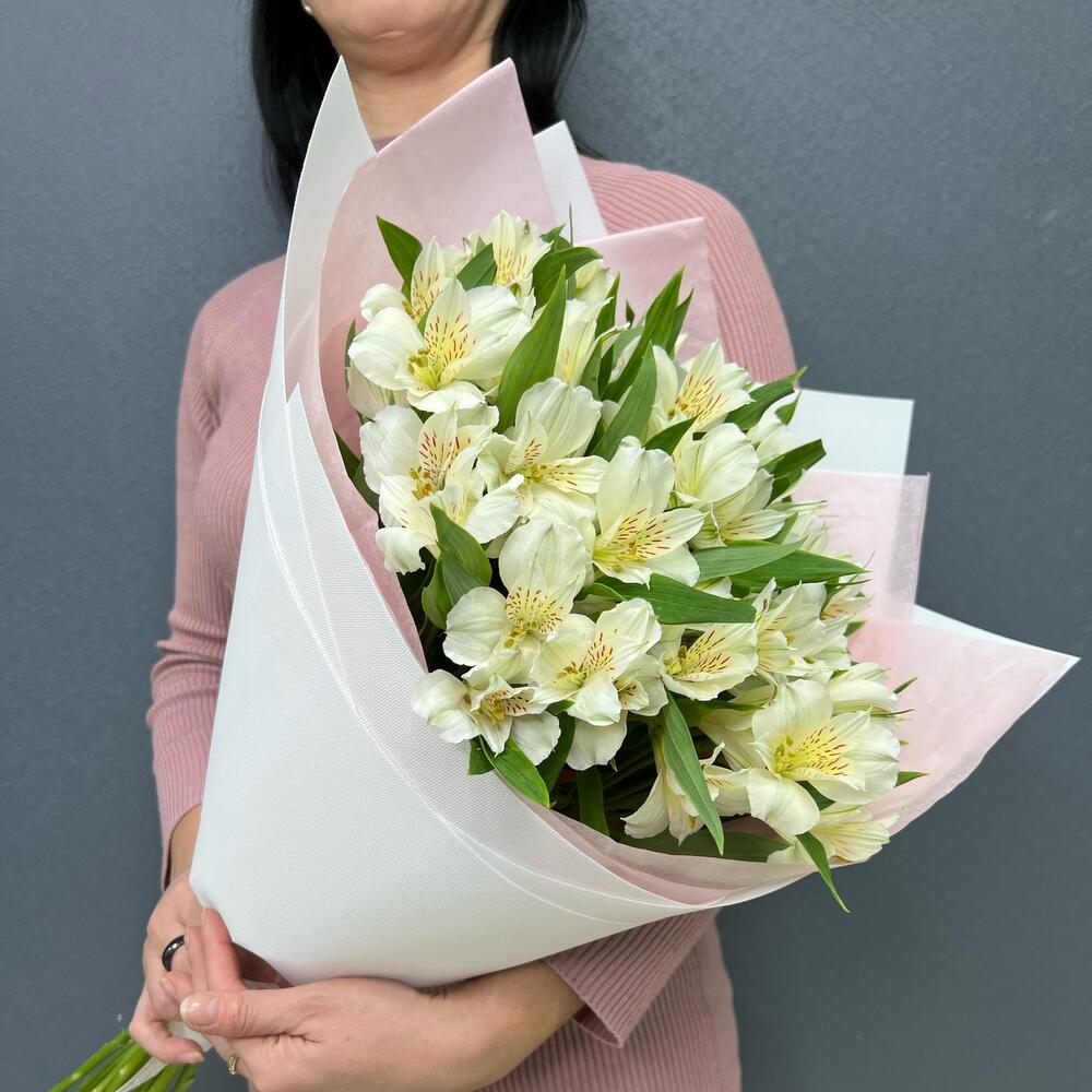 Альстромерия – 15 шт.Лента – 1 шт.Тишью – 1 шт.структурированный фаомиран – 1 шт.