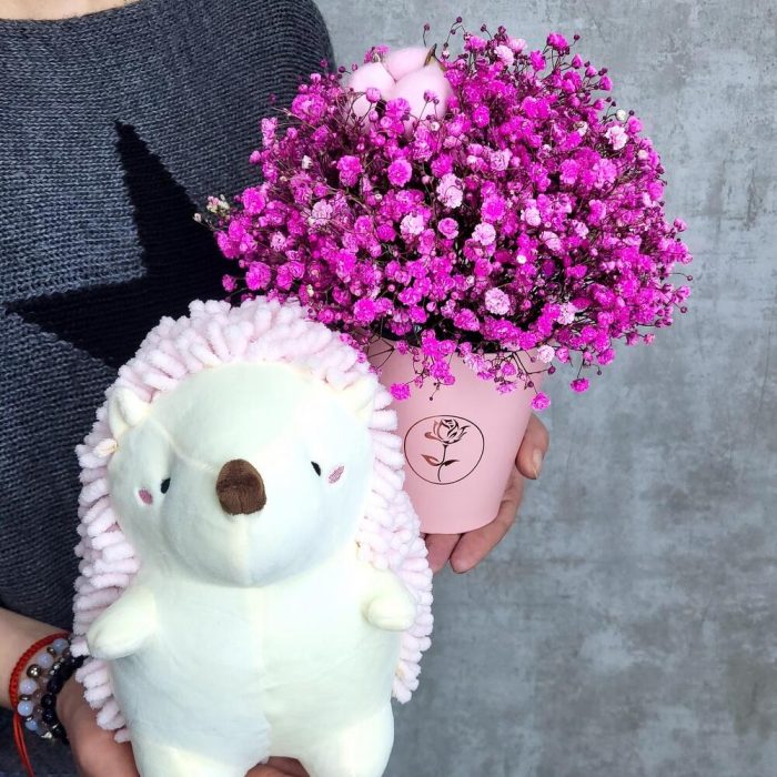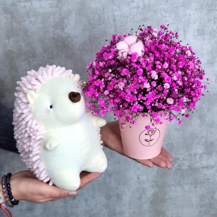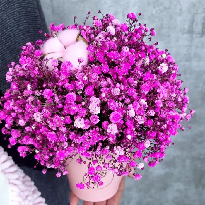 “Атлас☁️” – цветочная композиция с зефиром в деревянном ящике
