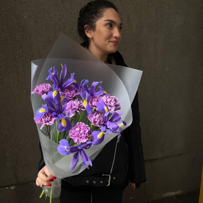 Гвоздика сортовая – 8 шт.Упаковка дизайнерская – 2 шт.Ирис Blue Magic – 5 шт.