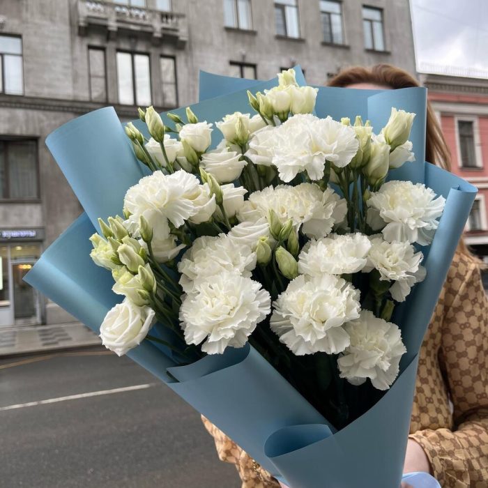 ВЕРСАЛЬ белоснежный букет из диантусов и лизиантусов