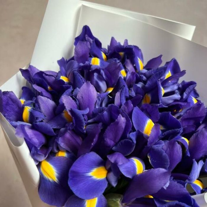 ирисы – 15 шт.декоративная упаковка – 1 шт.Атласная лента – 1 шт.