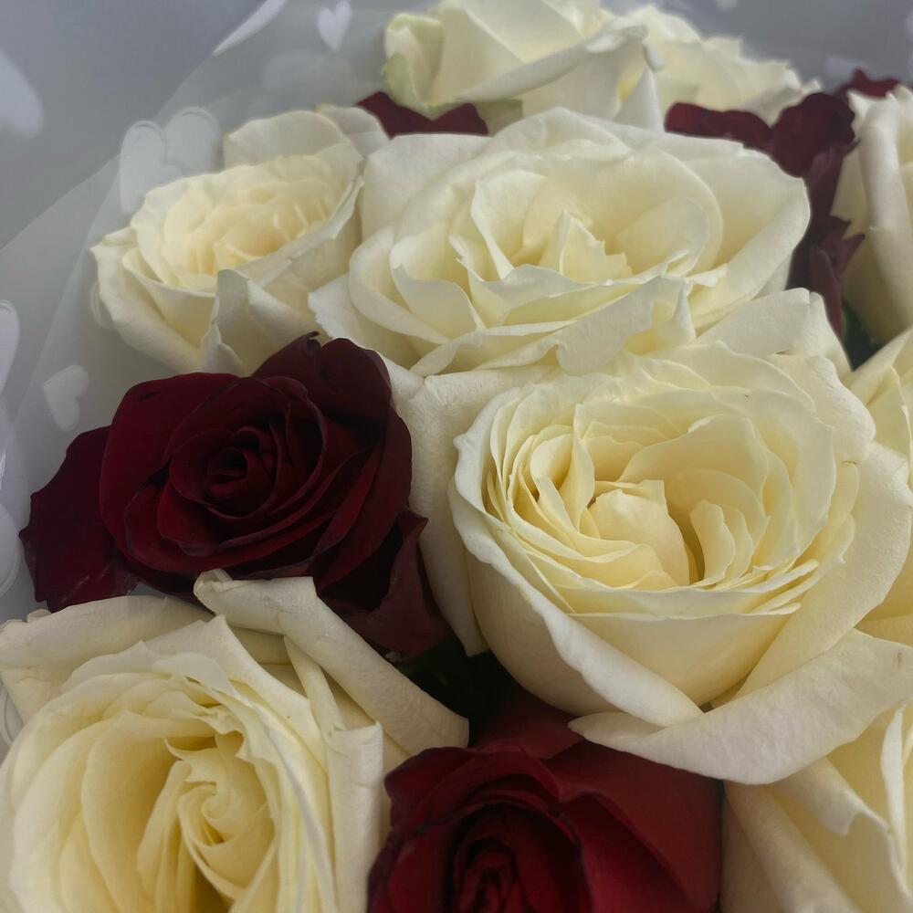 Букет из 15 красных и белых роз