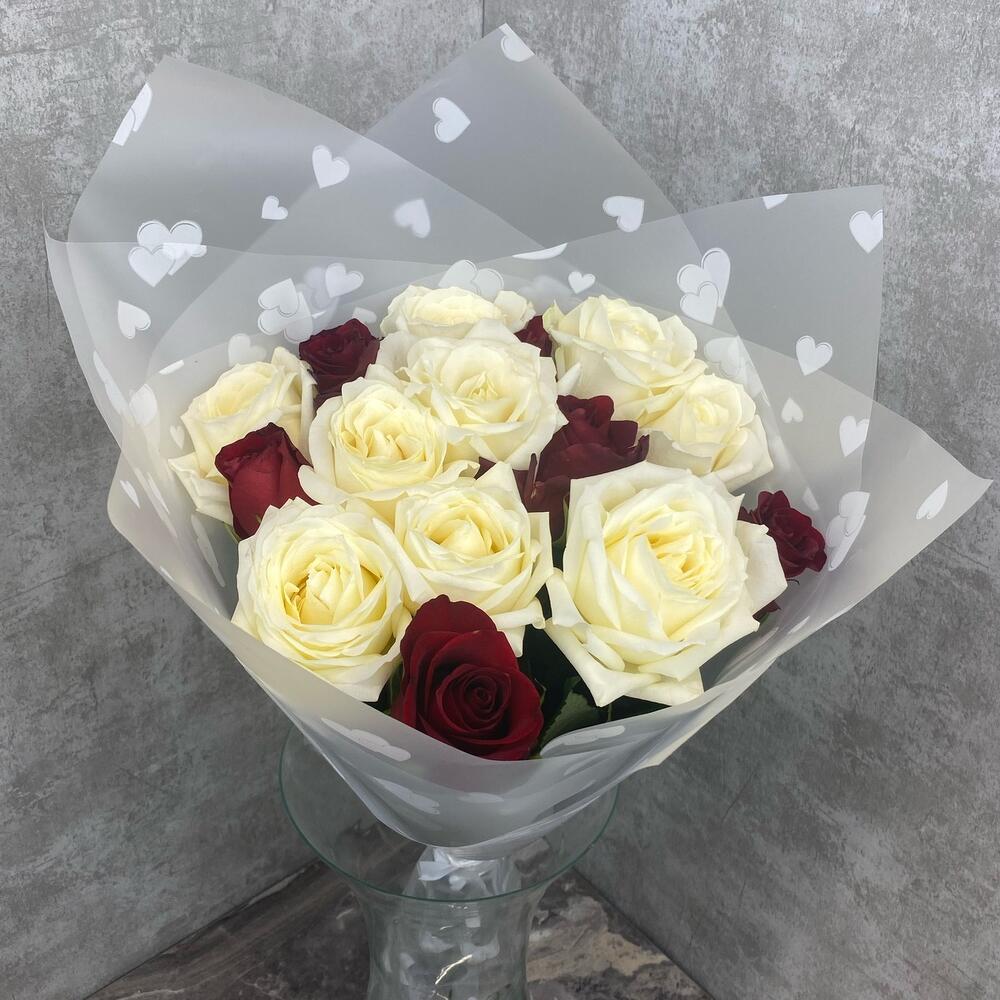 Роза красная – 7 шт.Роза белая – 8 шт.