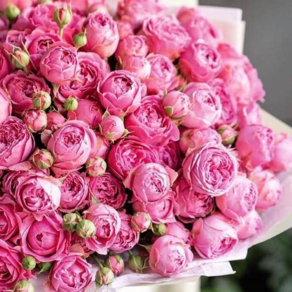 розы кустовые пионовидные – 51 шт.Упаковка дизайнерская – 1 шт.Лента атласная – 2 шт.Открыточка с вашими пожеланиями – 1 шт.хорошее настроение – 100 шт.инструкция по уходу за цветами – 1 шт.коробка переноска – 1 шт.Кризал – 1 шт.