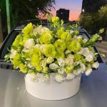 “Атлас☁️” – цветочная композиция с зефиром в деревянном ящике
