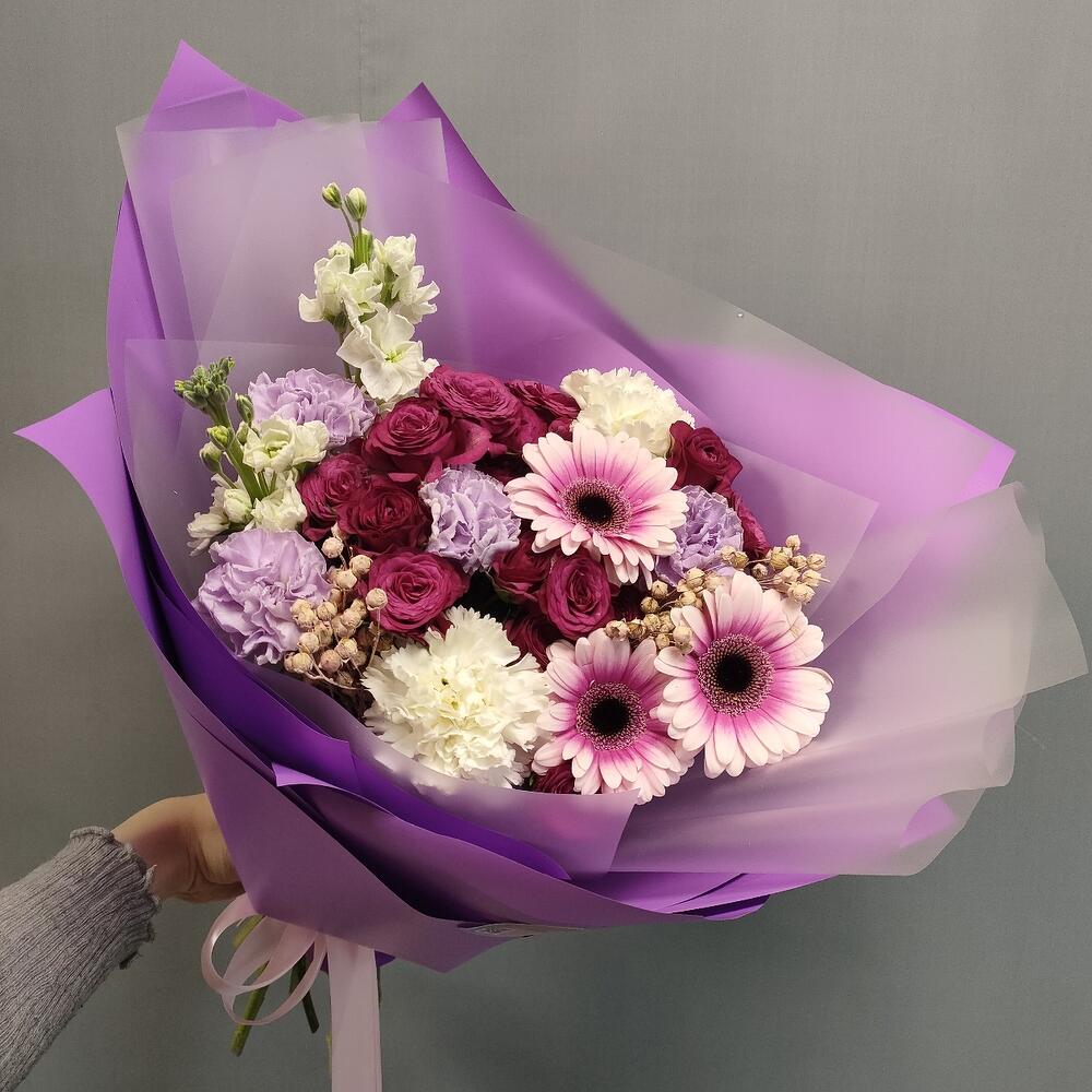 Гвоздики, Кустовые розы, Пионовидные розы, Розы