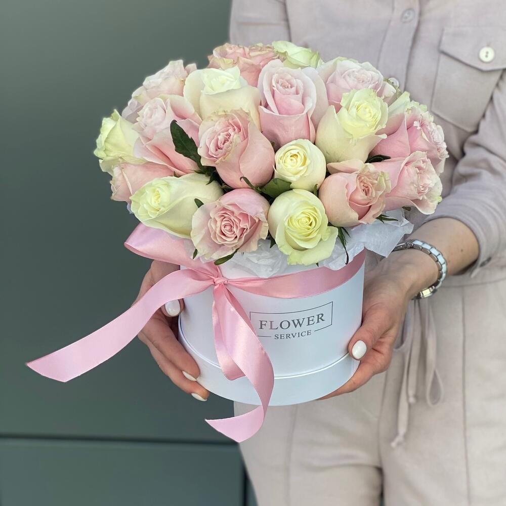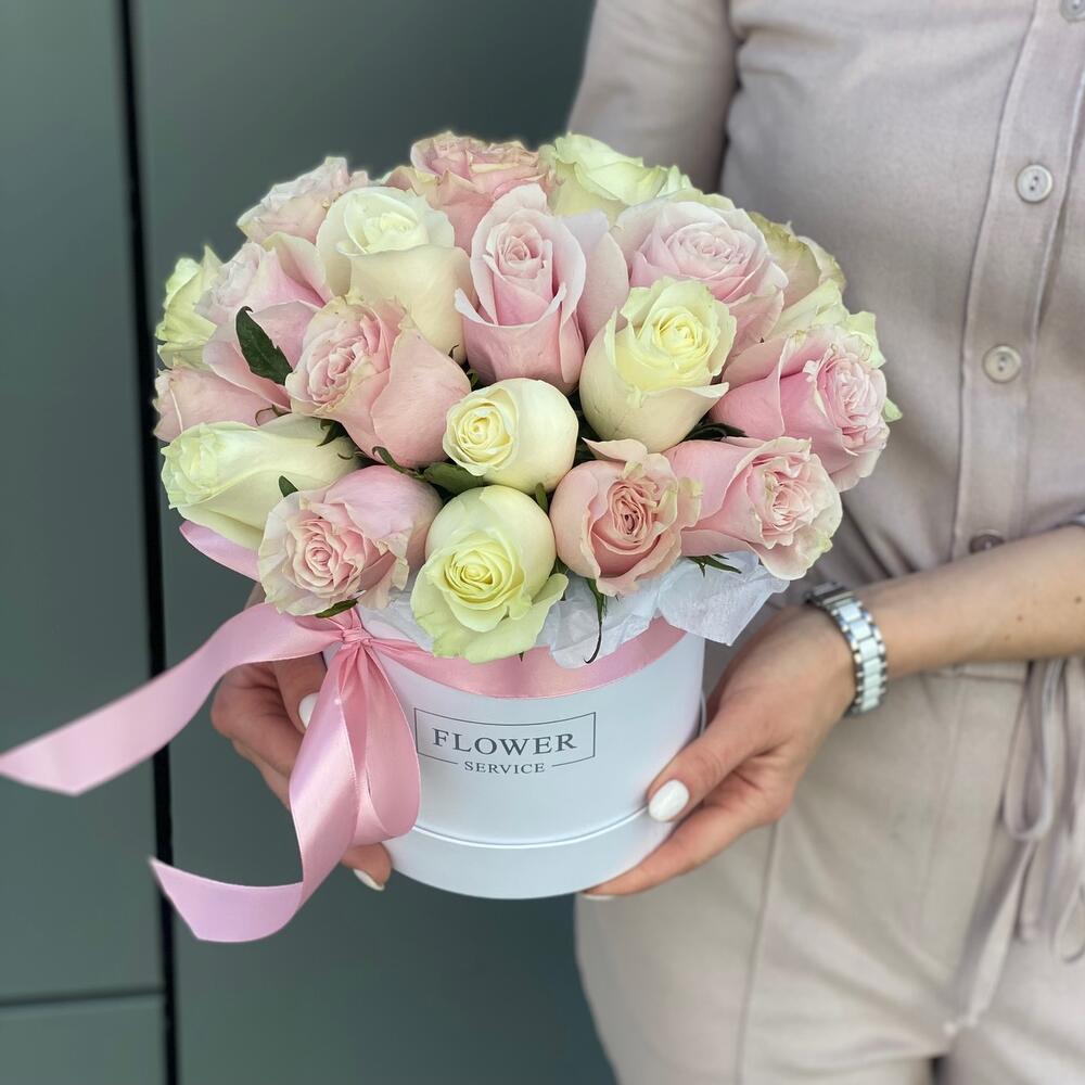 Коробка из розовых и белых роз !