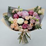 Выразительный, ароматный букет из пионов, роз и эустомы в стильном оформлении. Такой букет всегда уместен и подойдёт для любого повода: День Рождения, именины, годовщина свадьбы, рождение ребенка, 8 марта, День Святого Валентина, выпускной и т.д. Можно вручить маме, сестре, … Показать ещёподруге, коллеге, учителю, любимой.